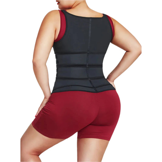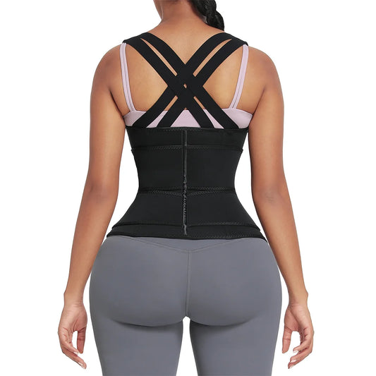 Adjustable 3-Belt Latex Waist Trainer | Black Vest Shaper with Zipper & Straps for Women Shapewear