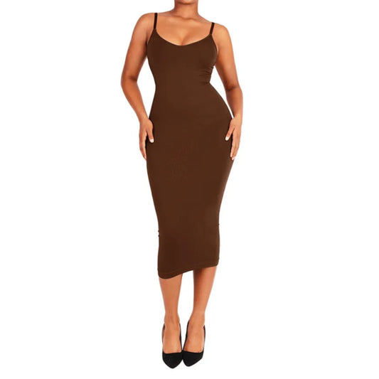 Shaping Bodysuit Maxi Dress - Tummy Control, Seamless Backless Lounge Modal Dress